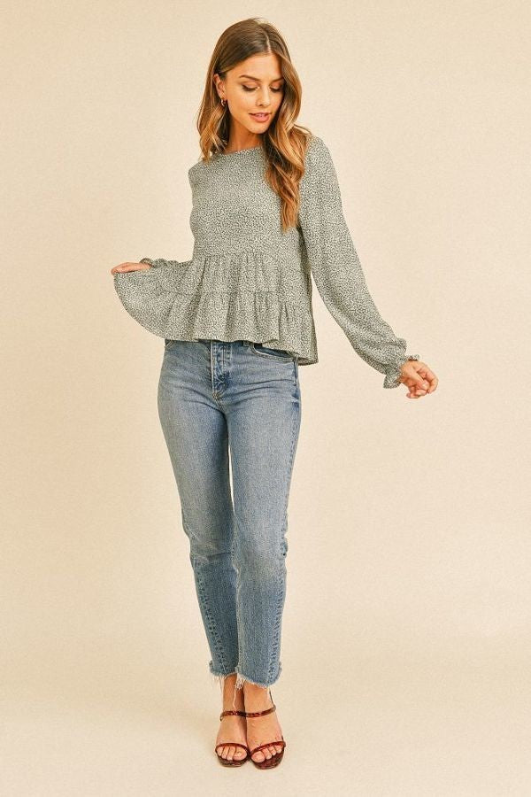 Ditsy Floral Crinkle Gauze Tiered Long Sleeve Top